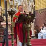 Deacon Alex proclaimed the Gospel at Mass at the Rosary Shrine in London on 8 June,